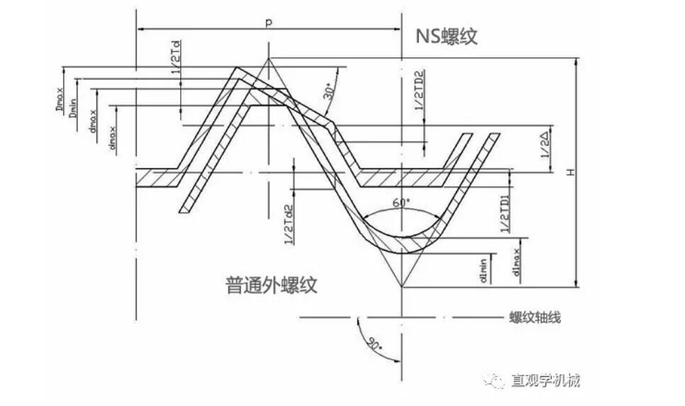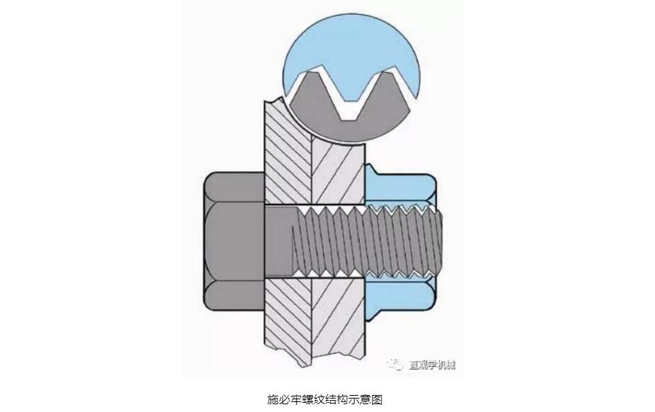在30°楔形陰螺紋的牙底處有一個(gè)30度的楔形斜面,當(dāng)螺栓螺母相互擰緊時(shí),螺栓的牙尖就緊緊地頂在陰螺紋的楔形斜面上,從而產(chǎn)生了很大的鎖緊力。
